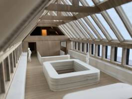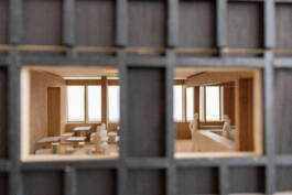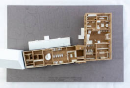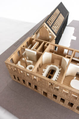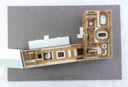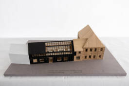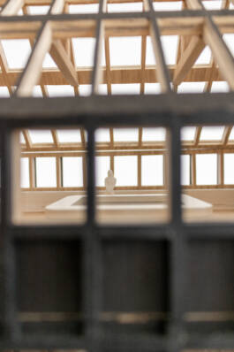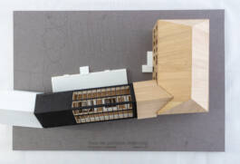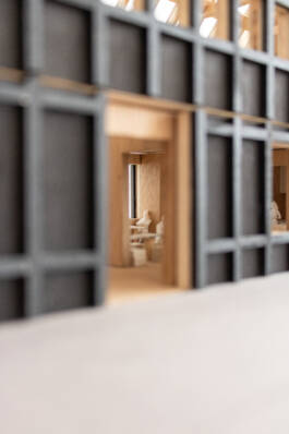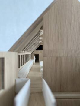 Das Modell, welches im Maßstab 1:50 gefertigt ist, zeigt die Elemente des Entwurfs im Detail, jedoch trotzdem abstrahiert.
