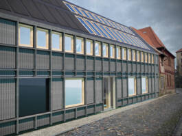 So entstand der Wunsch, ein Zentrum für gesunde Ernährung in das Bestandsgebäude und in einen, die Baulücke schließenden, Anbau, auf dem Gelände des Grudenberg 7 in Halberstadt, zu bringen, der die Aspekte des nachhaltigen Bauens berücksichtigt und sich bautypisch an der Architektur des Bestands und der Umgebung orientiert.